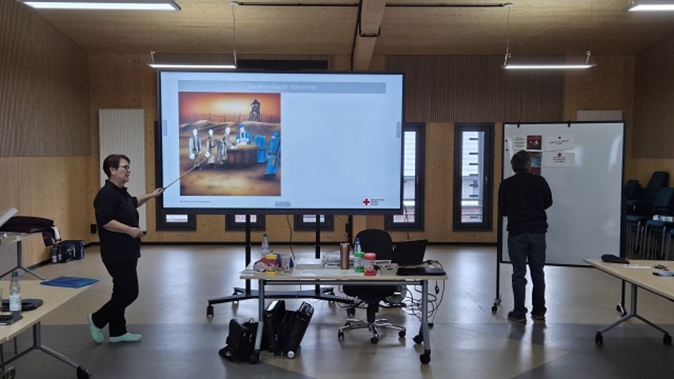 Es war der Startschuss für die diesjährige Ausbildungssaison und behandelte die Frage: "Wann entstand das Rote Kreuz, was war die Idee dahinter und wie wurde diese bis heute umgesetzt?".