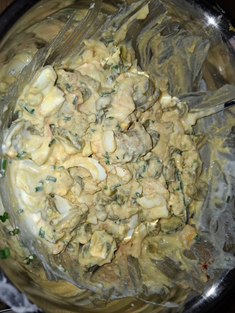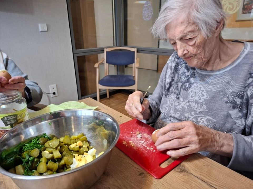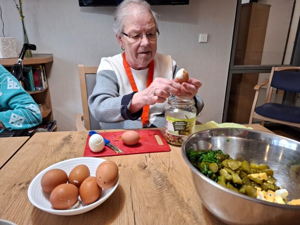 In unserem Justusstift gibt es frischen Eiersalat noch ganz klassisch und mit viel Liebe selbst zubereitet. Frisch gekochte Eier werden sorgfältig geschält und fein geschnitten, anschließend mit cremiger Mayonnaise, einem Hauch Senf und frischen Kräutern verfeinert. Eine Prise Salz und Pfeffer rundet den Geschmack ab. So entsteht ein hausgemachter Eiersalat, der super lecker schmeckt.
