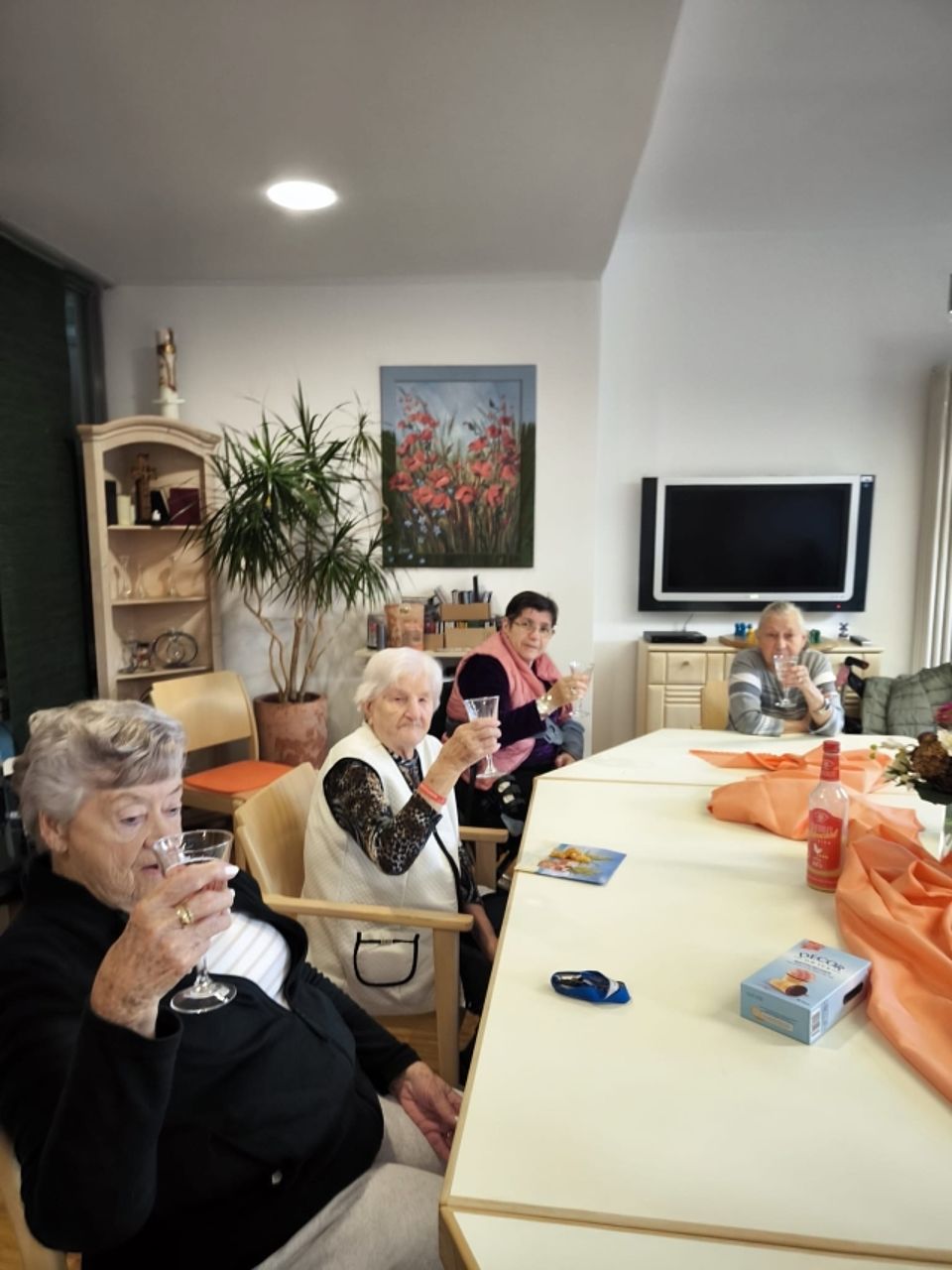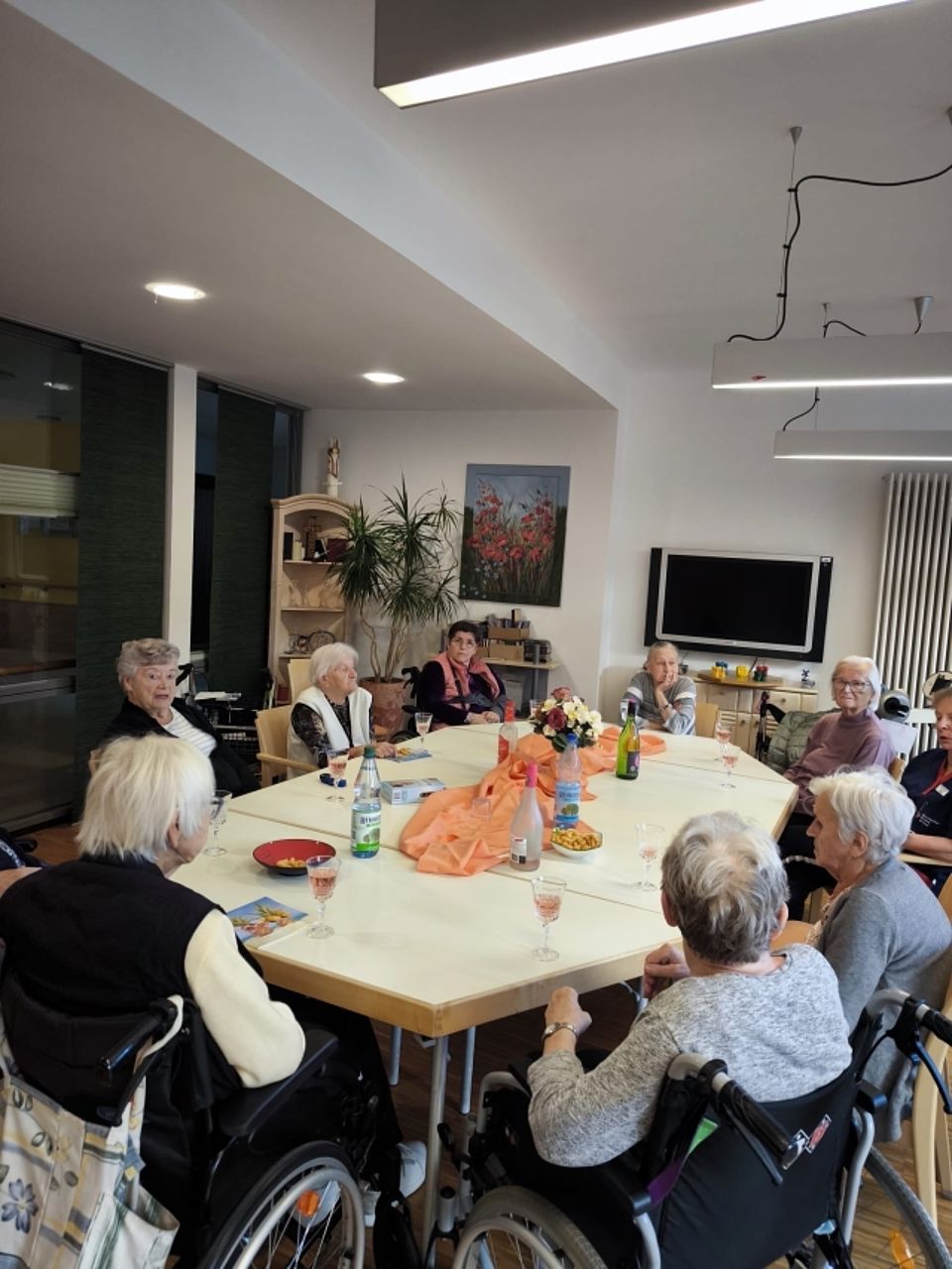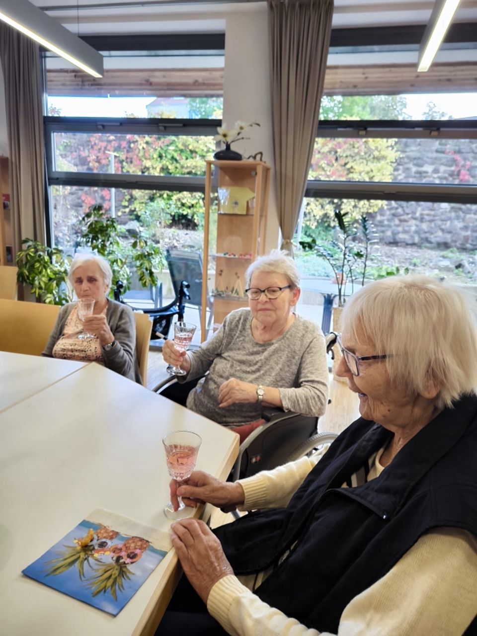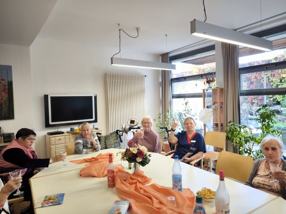 Unsere lieben Bewohner im Seniorenheim Justusstift freuen sich über die gemeinsame Kaffeeklatsch Runde. Gute Gespräche, kleine Knabbereien und ein Sektchen zum Anstoßen haben den Nachmittag versüßt.