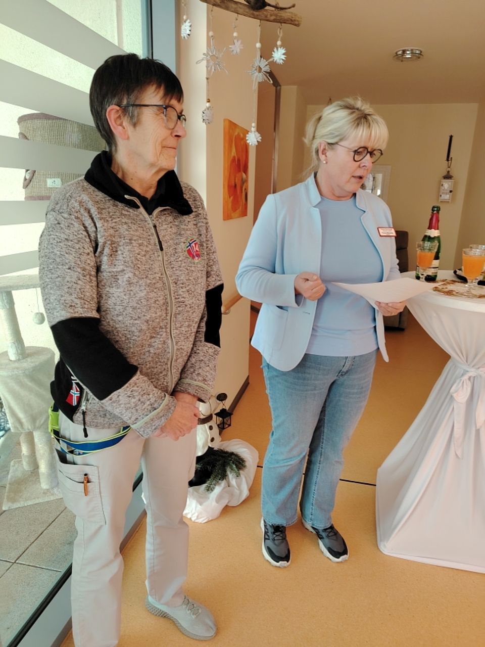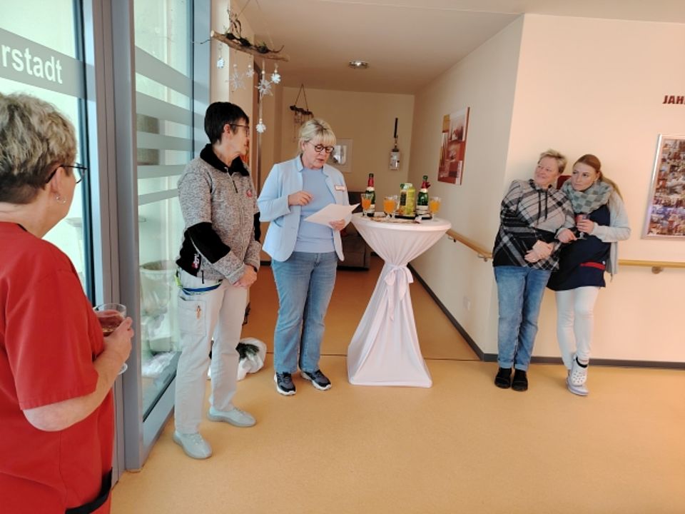 Auch Heimleitung Fr. Massalsky und Ihre Kollegen haben sich für Petra Stascheit eine kleine Überraschung zum Abschied einfallen lassen, wobei die Augen nicht immer trocken blieben. „Liebe Petra, DANKE für die gemeinsame Zeit und noch viele Jahre gemeinsam mit uns im Rahmen deines Ehrenamtes, was Du den Bewohnern zuliebe noch immer fortführen willst!“