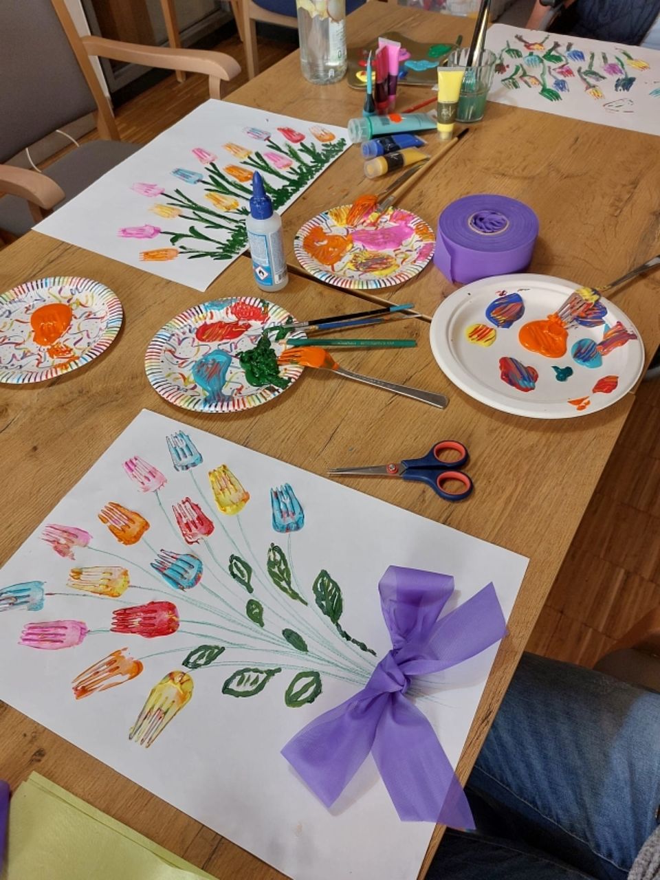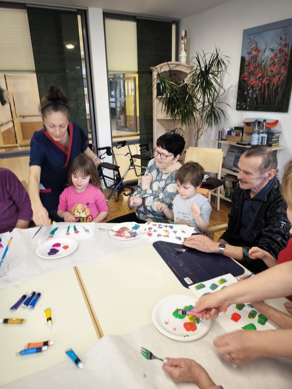 Heute wurde es bei uns im DRK Seniorenheim Justusstift richtig bunt! Gemeinsam mit den Kindern der DRK Kita Regenbogenhaus haben wir fröhliche Frühlingsdeko gebastelt. Mit viel Farbe, Kreativität und ganz viel Freude sind wunderschöne kleine Kunstwerke entstanden.