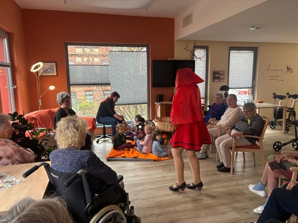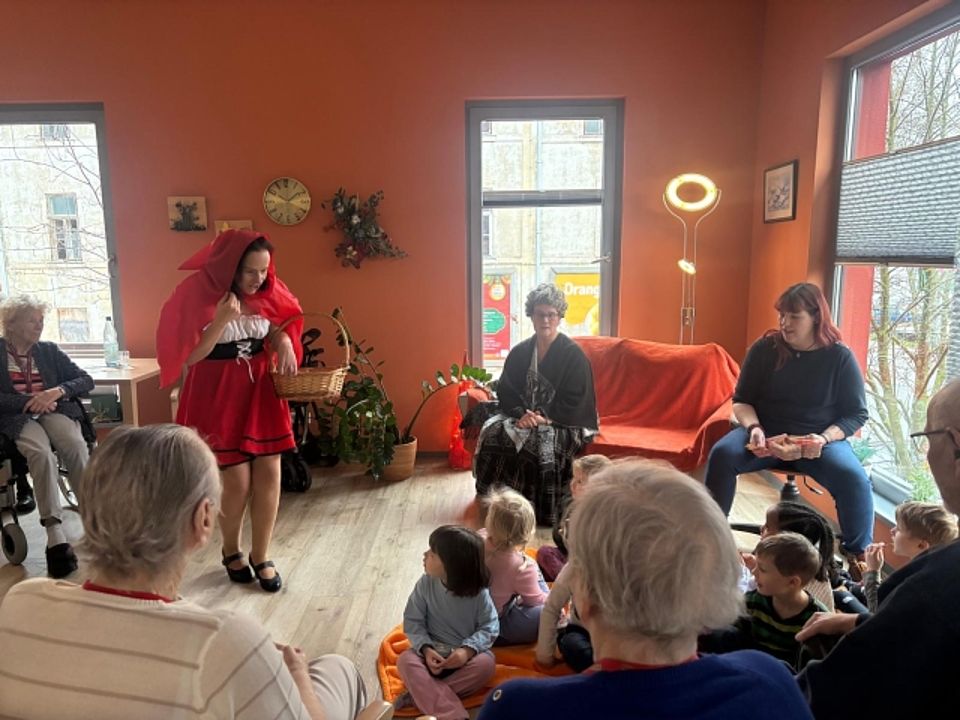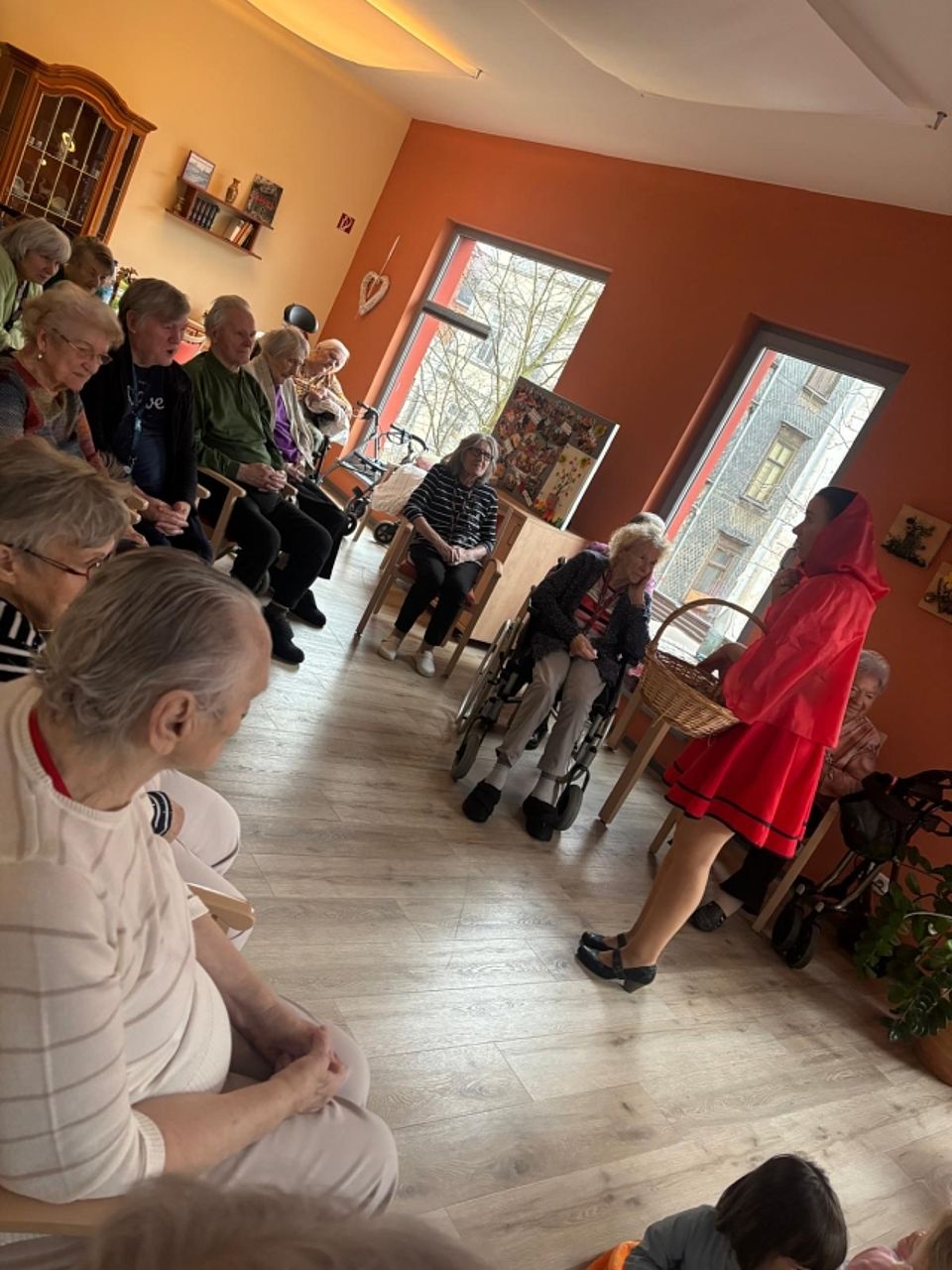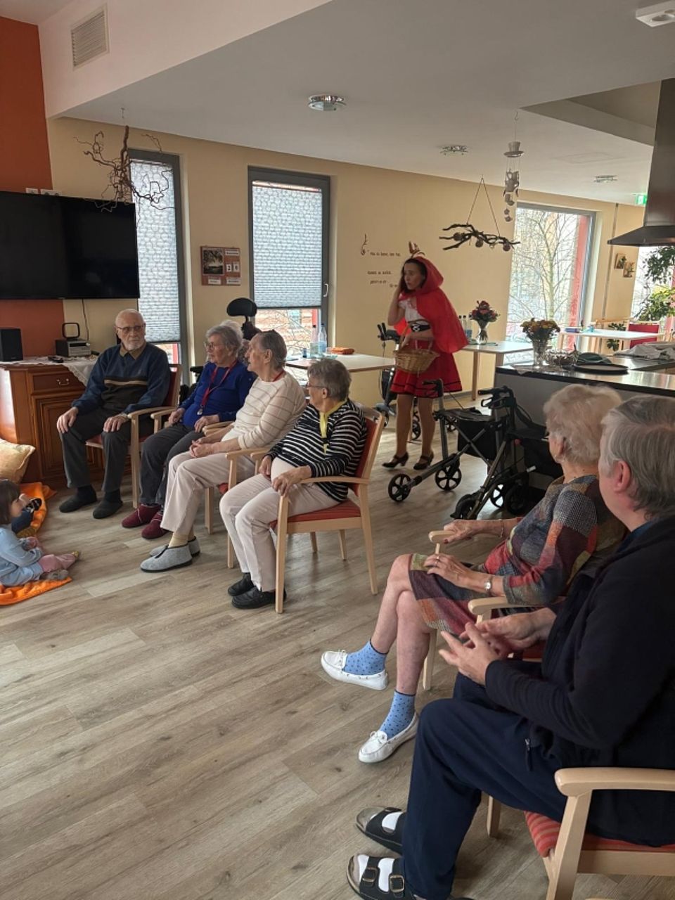 „Märchenstunde“ mit der KITA-Regenbogenhaus. Besuch des Rotkäppchens und ihrer Großmutter, welche unter anderem die Geschichte vom „Rotkäppchen“ vorlasen, zwischendurch und im Anschluss gab es kleine Naschereien aus Rotkäppchens Körbchen.