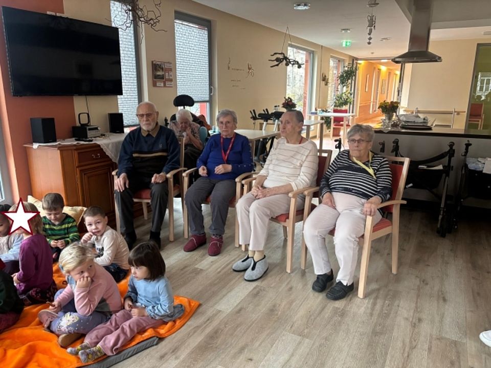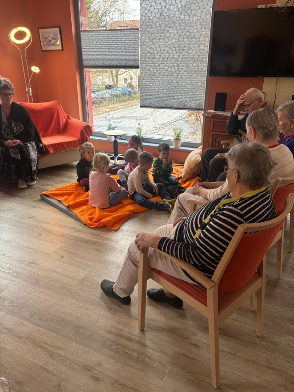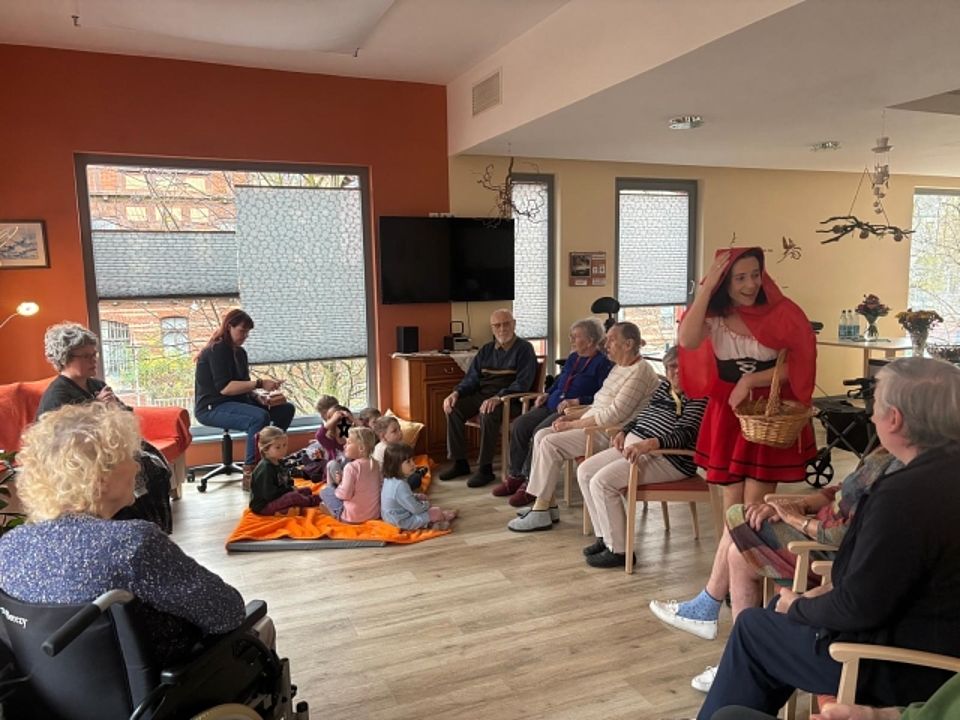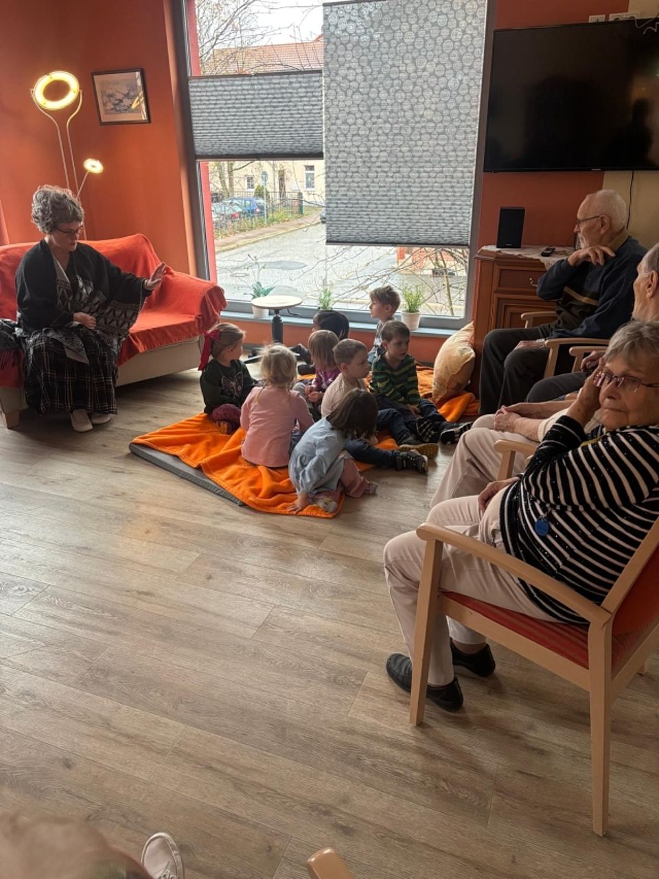 „Märchenstunde“ mit der KITA-Regenbogenhaus. Besuch des Rotkäppchens und ihrer Großmutter, welche unter anderem die Geschichte vom „Rotkäppchen“ vorlasen, zwischendurch und im Anschluss gab es kleine Naschereien aus Rotkäppchens Körbchen.