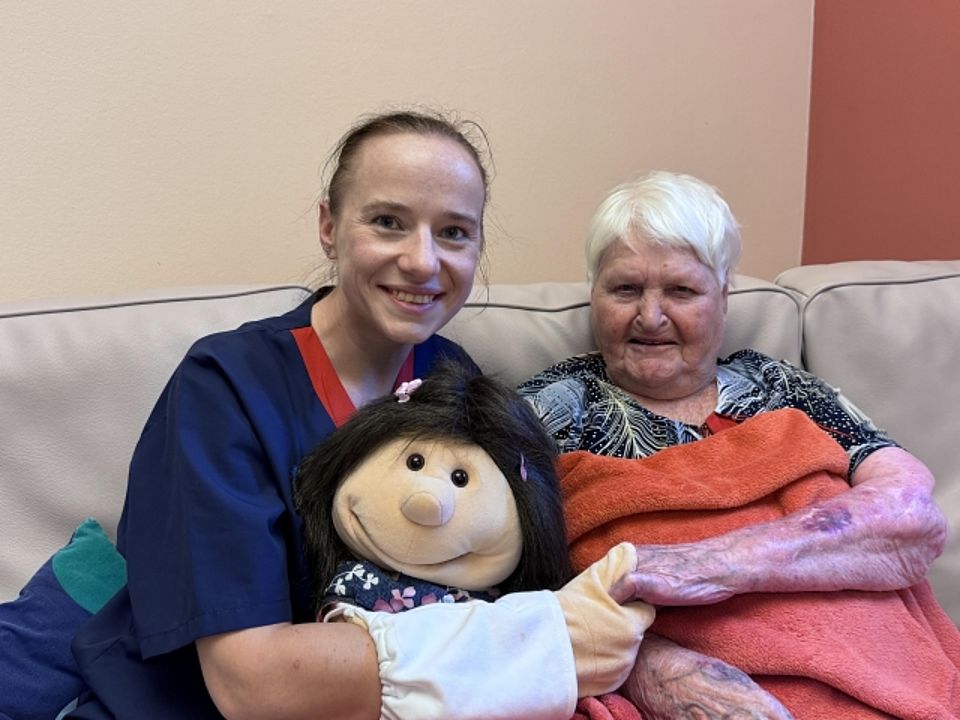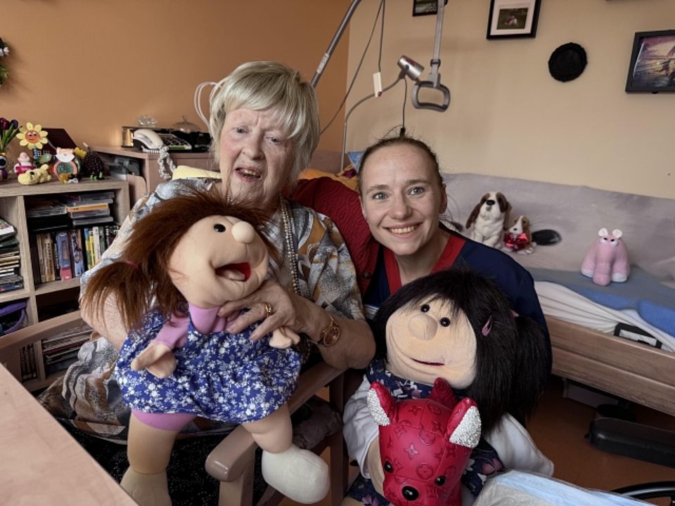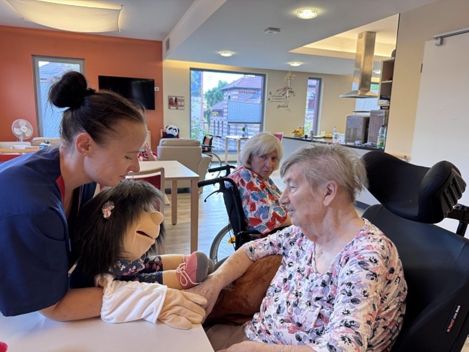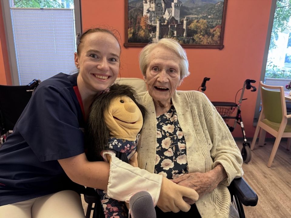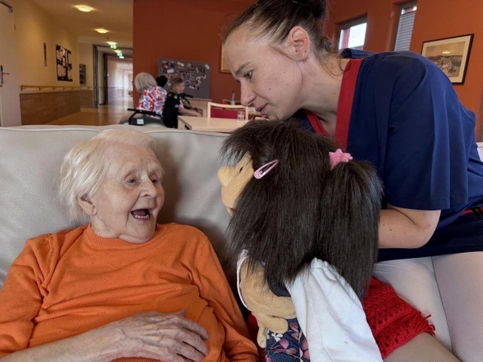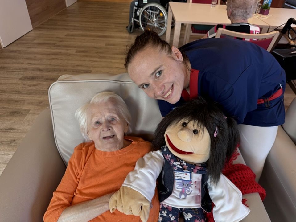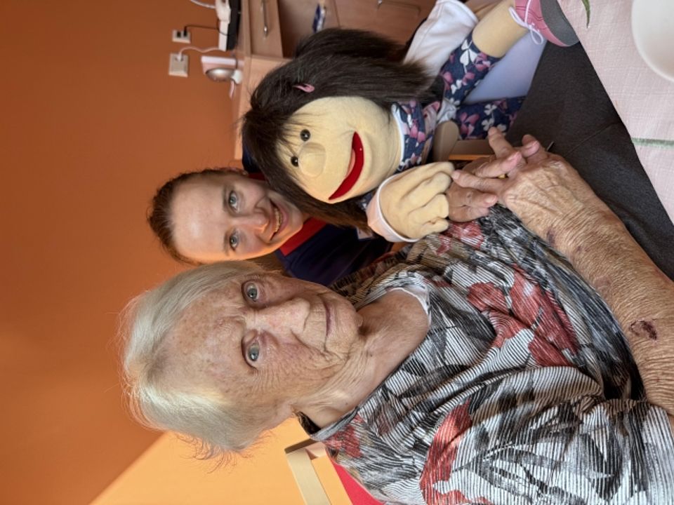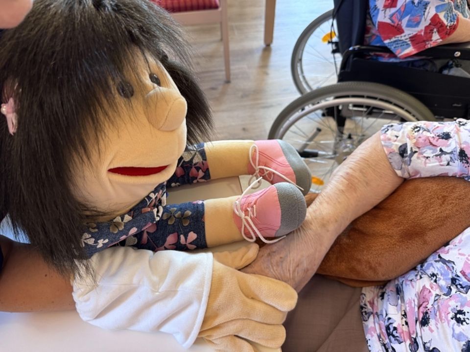 In unserem Haus Fischerstadt ist die kleine Handpuppe Lea wieder mit ihrer Mama Christin unterwegs. Sie zaubert unseren Bewohnern immer ein Lächeln ins Gesicht.