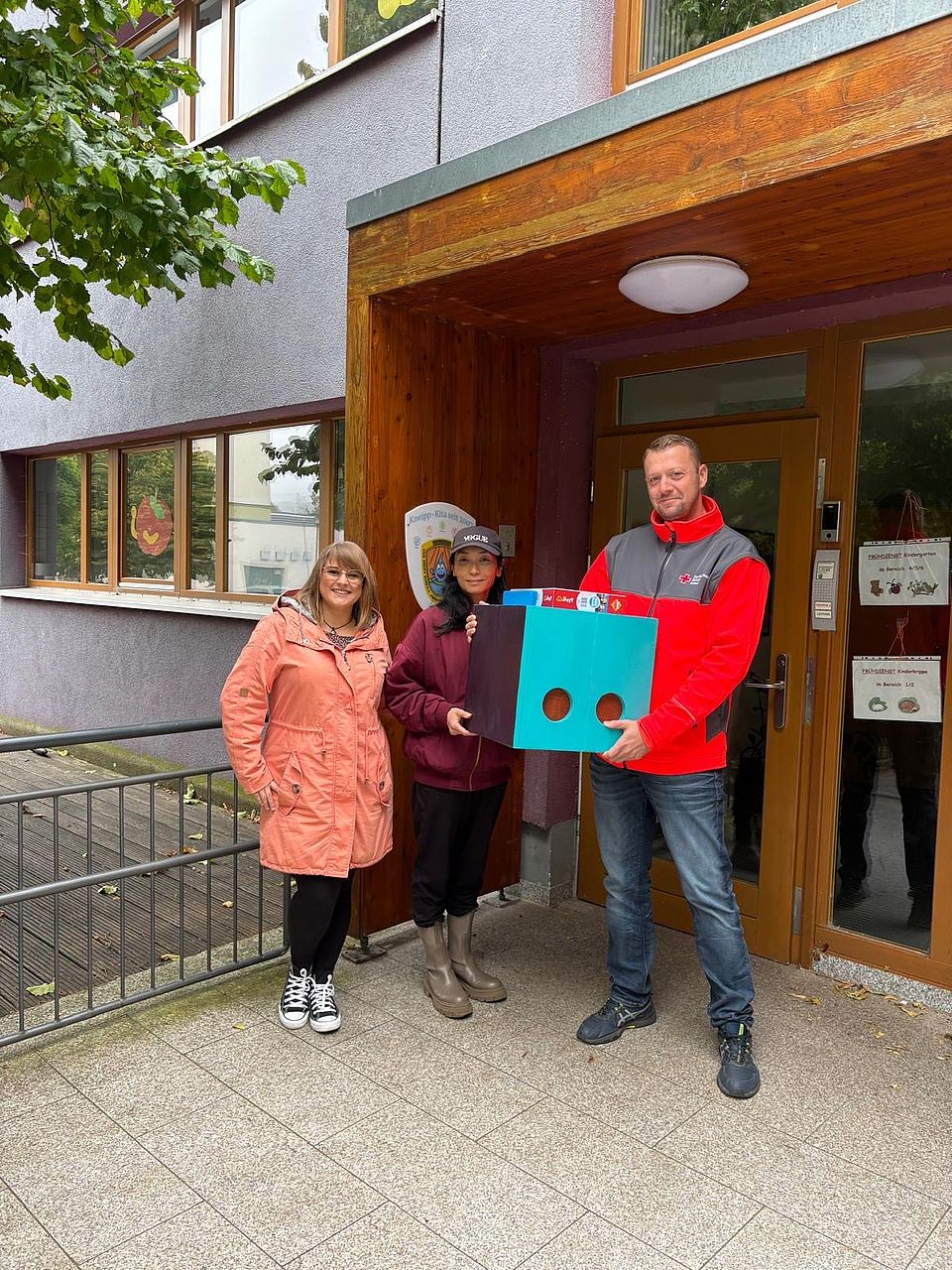 Im Rahmen des Projektes „Coaching und Integration für Alleinerziehende“ der Ziola GmbH wurde diese von der Teilnehmerin Nao Omi gebaut und gestaltet. Projektkoordinatorin Sophie Kästner berichtete, dies sei eines von vielen Projekten der Ziola GmbH. Gemeinsam überreichten sie heute die Fühlkiste zum dauerhaften Einsatz bei uns. Herr Fuckel, als Leiter der Kita, nahm diese stellvertretend für die Kinder entgegen. Wir werden viele Einsatzmöglichkeiten finden und gemeinsam tasten, fühlen und spüren.